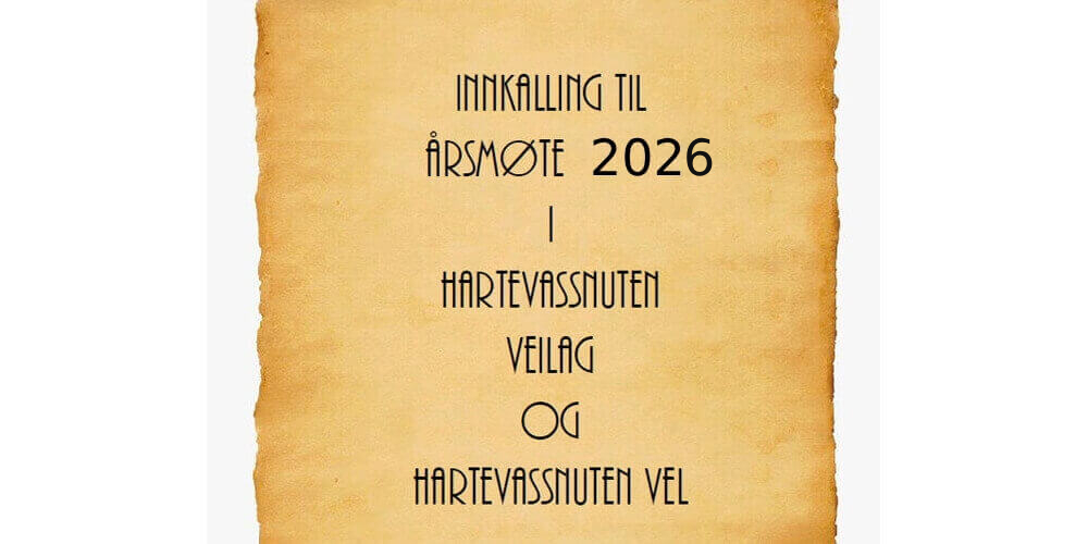Årsmøte i Hartevassnuten vel forening lørdag 19 april (påskeaften) klokken 9 – på Hovedstøylen